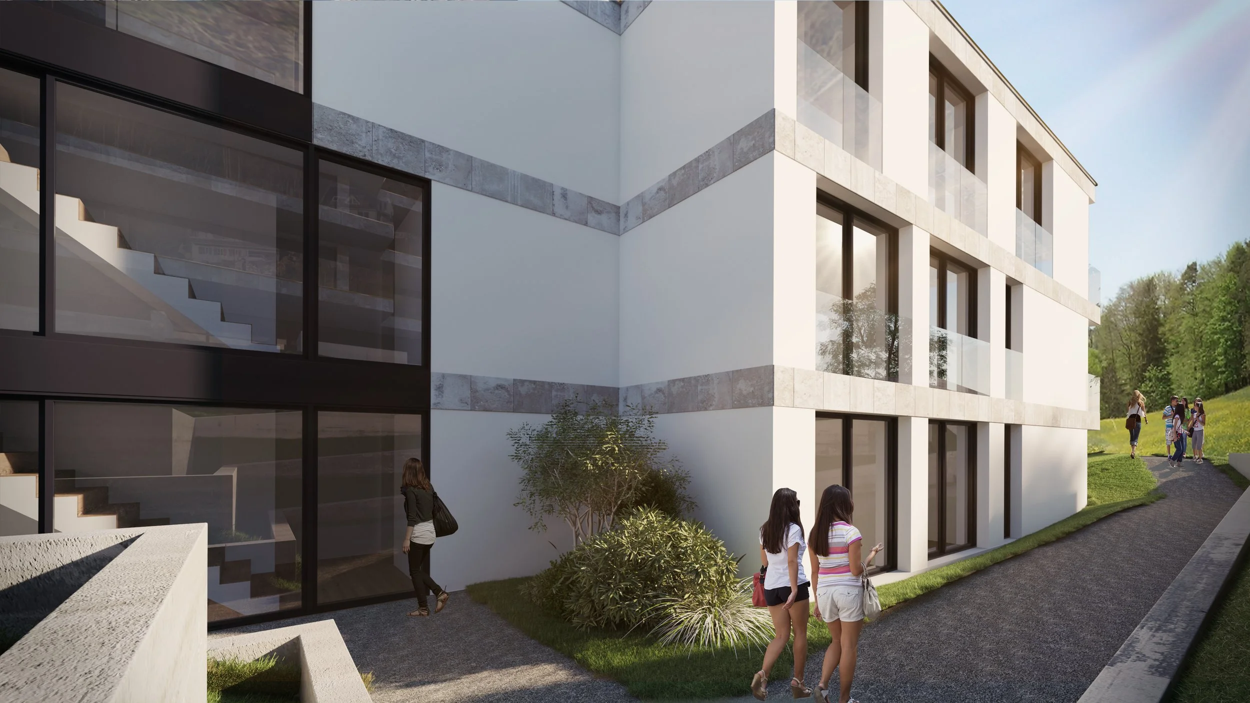 Die Architektur von Belvedere Egerkingen steht für puristische Eleganz. Klare Linien, ein ausgewogenes Volumen und eine reduzierte Formensprache prägen das Erscheinungsbild. Die Fassaden fügen sich selbstverständlich in die Hanglage ein und orientieren sich an der natürlichen Topografie. Grosszügige Fensterflächen schaffen fliessende Übergänge zwischen Innen- und Aussenraum und lassen Tageslicht gezielt ins Gebäude eindringen.
