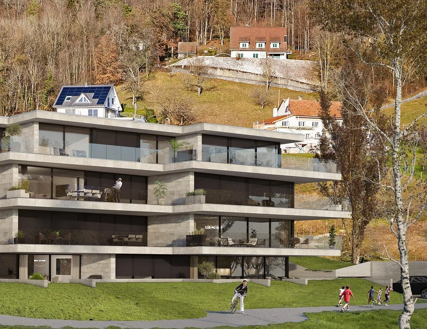 Das Neubauprojekt entsteht an einer der schönsten Lagen der Region – ruhig, sonnig und mit einer Aussicht, die beeindruckt. Hier entstehen zehn moderne 3.5- bis 5.5-Zimmerwohnungen, die Eleganz, Komfort und Energieeffizienz vereinen. Die Wohnungen sind grosszügig und durchdacht konzipiert. Offene Wohn- und Essbereiche, raumhohe Fenster, edles Parkett und hochwertige Materialien sorgen für ein stilvolles Wohngefühl. Jede Einheit bietet grosse Balkone, Terrassen oder private Gartenflächen – mit viel Licht und Privatsphäre.